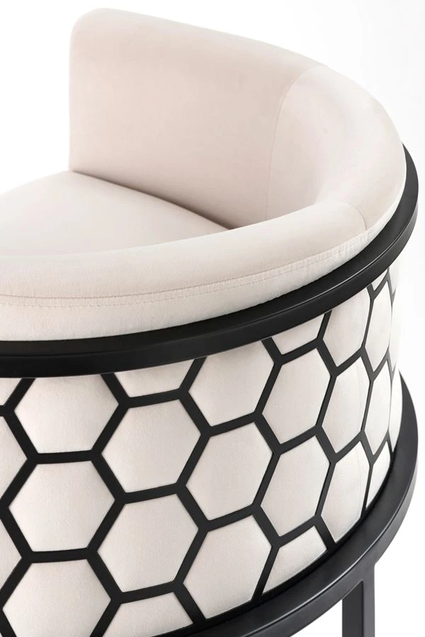 - A unique and distinctive counter stool with laser cut hexagonal detailing