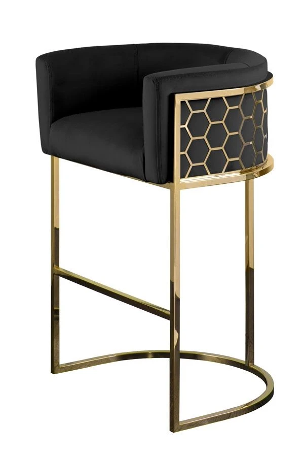 A unique and distinctive counter stool with laser-cut hexagonal detailing