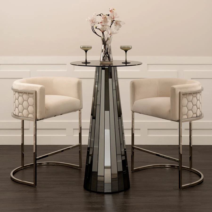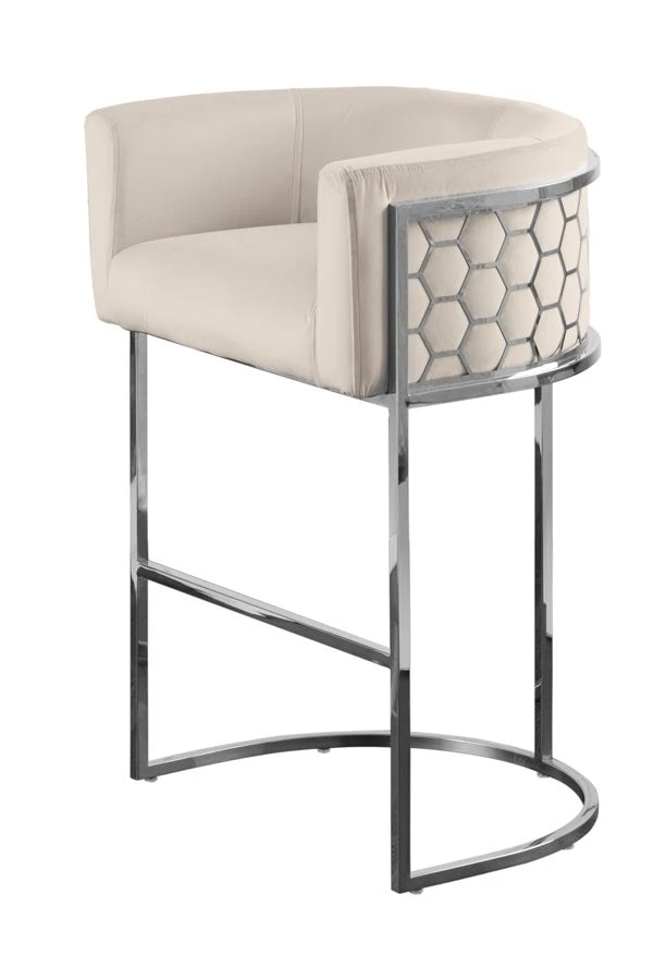 A unique and distinctive counter stool with laser-cut hexagonal detailing