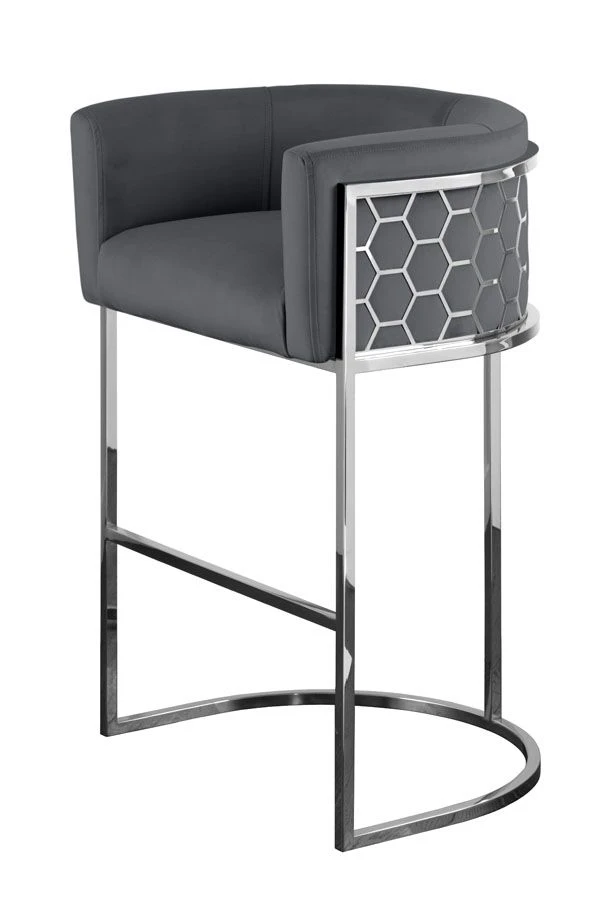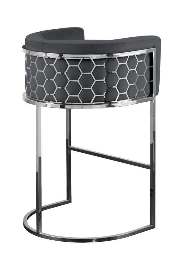 A unique and distinctive counter stool with laser-cut hexagonal detailing