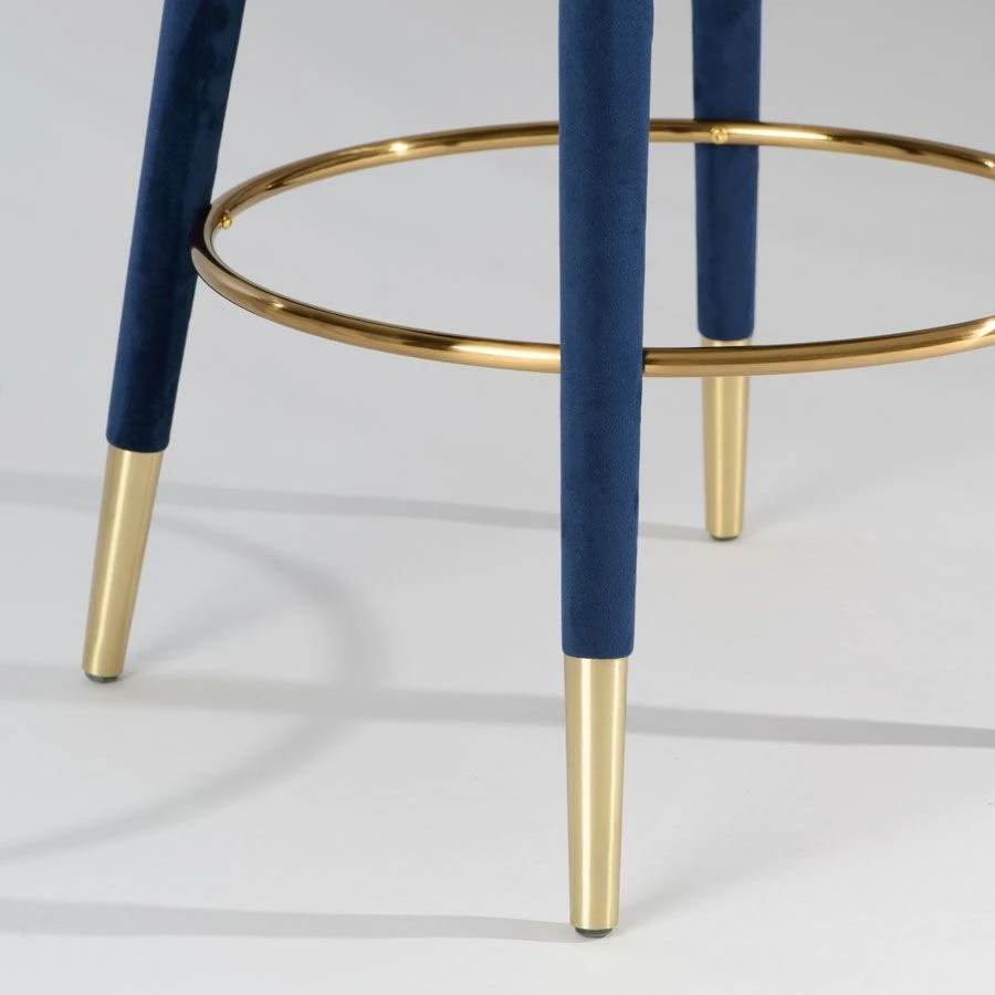 Bellucci Counter Stool – Navy Blue – Brass Caps