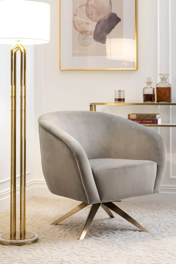 Brodie Swivel Chair – Dove Grey – Brass Base