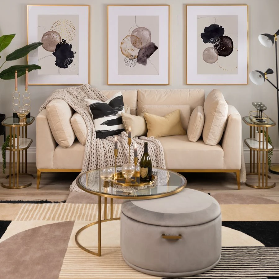 Cassie Two Seat Sofa – Chalk – Brushed Brass Base