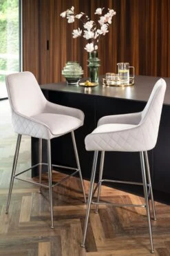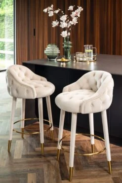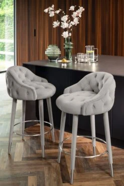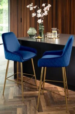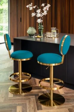 Sophia Counter Stool – Powder Blue – Brass Caps
