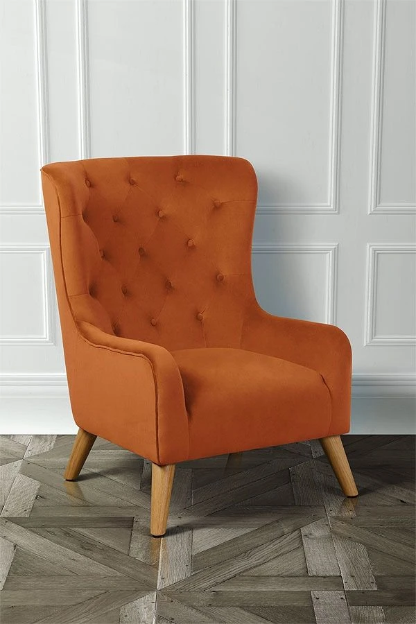 - Upholstered in luxurious velvet fabric with characterful deep buttoning and piping