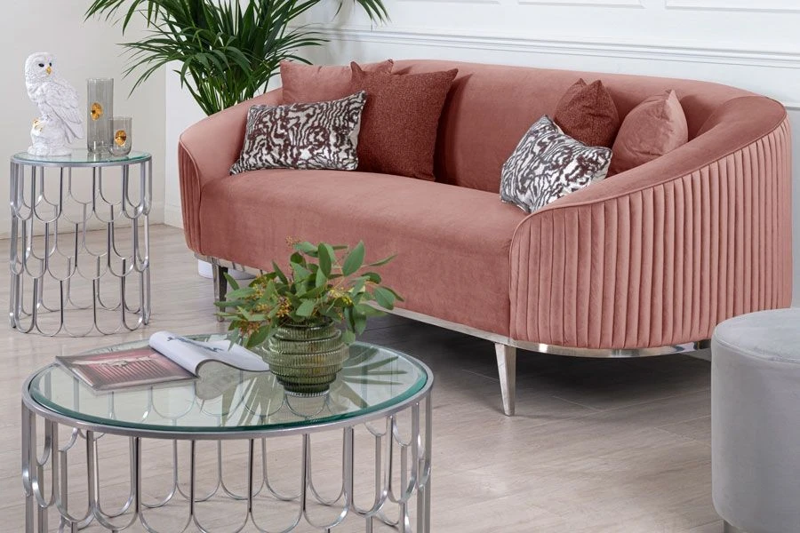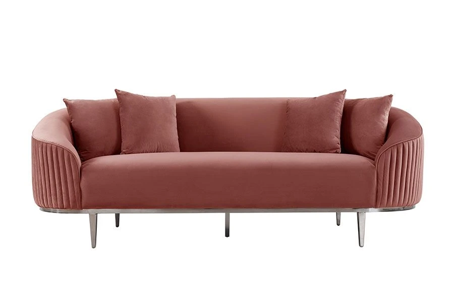 Ella Three Seat Sofa – Blush Pink – Polished Chrome Base