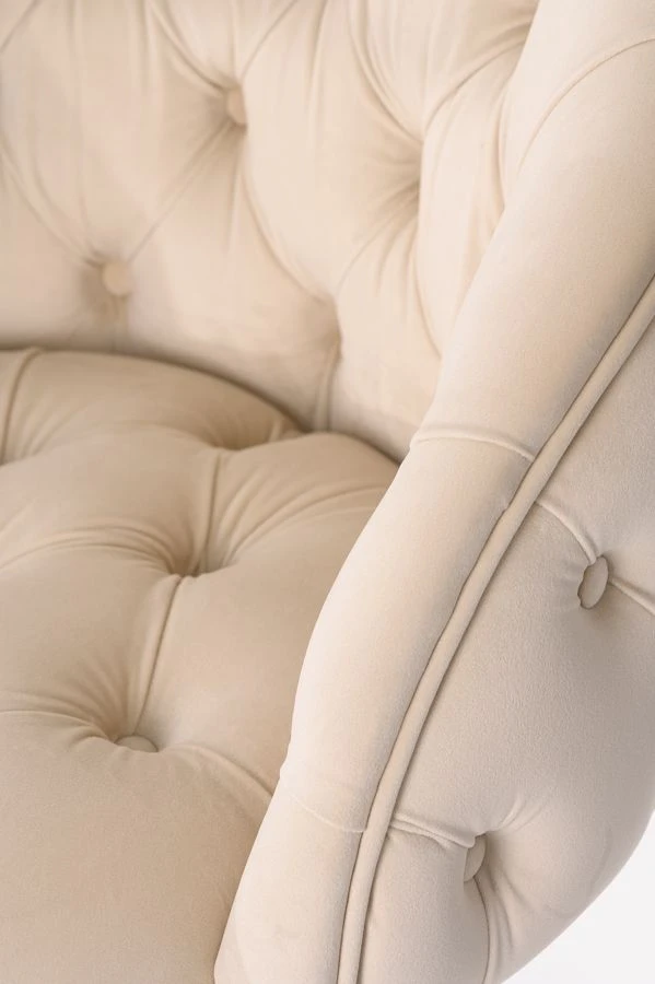 - A skilfully handcrafted, deep buttoned stool with elegant curvaceous lines