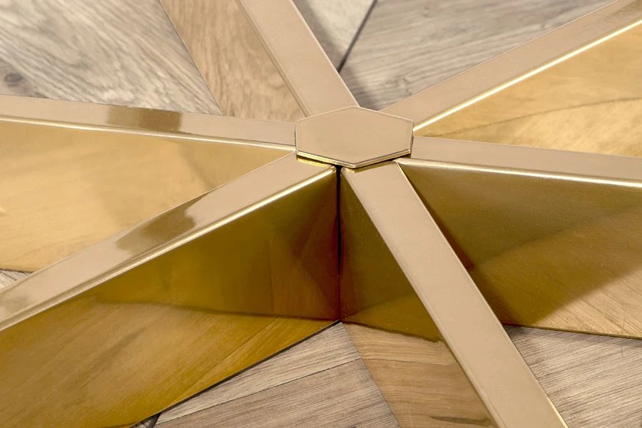 - Steel table base with brass finish