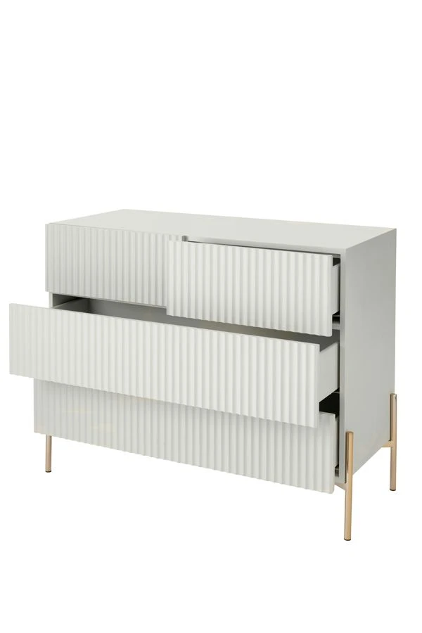 - A chic, contemporary chest of drawers with reeded detailing to drawer fronts