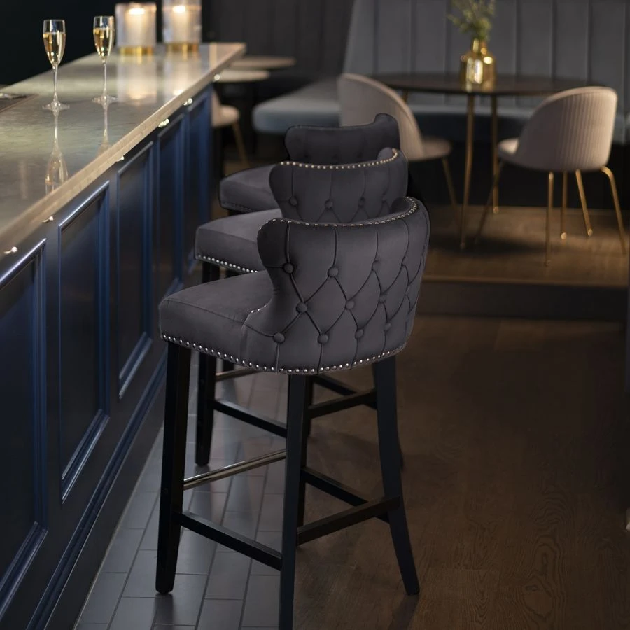 - Distinctive buttoning to the back gives character to this elegant bar stool