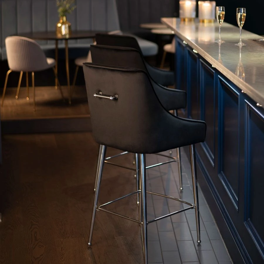 Mason Bar Stool – Black – Shiny Silver Legs