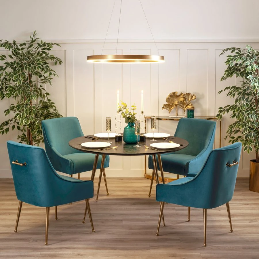 Mason Dining Chair Peacock – Brushed Gold Legs