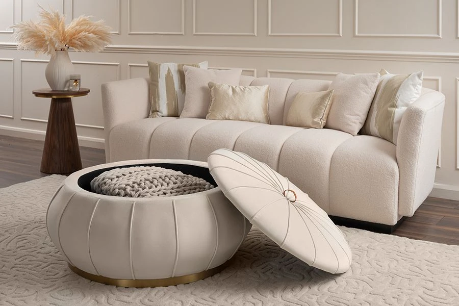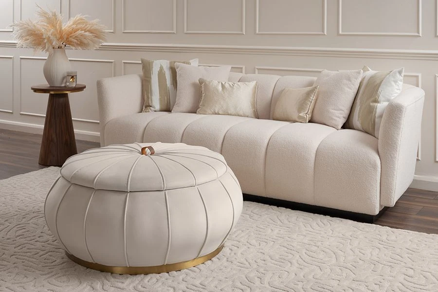 Pumpkin Storage Ottoman – Chalk – Brass Base