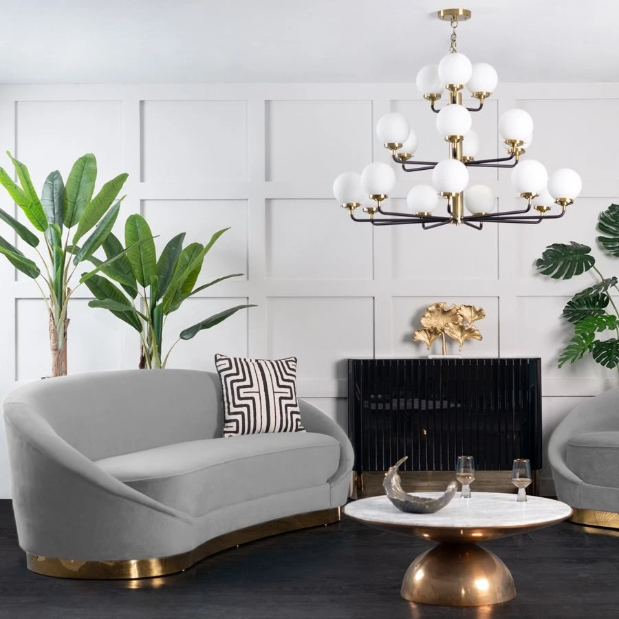 Selini Three Seat Sofa – Dove Grey Brass Base