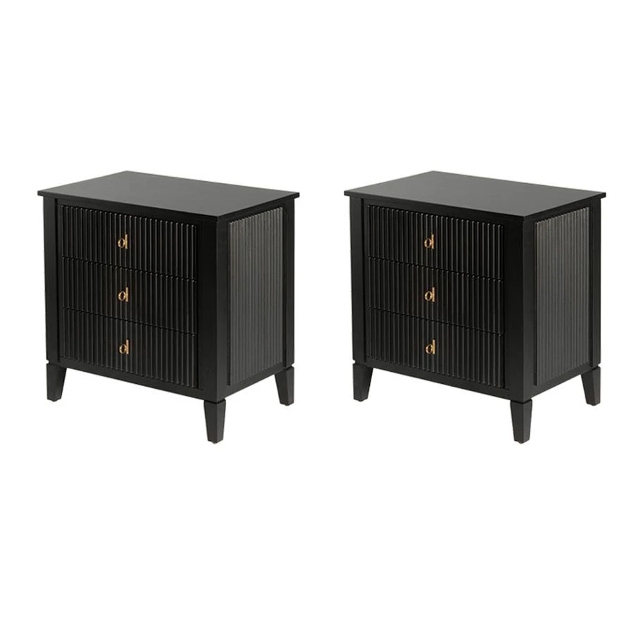 Set Of 2 Heidi Bedside Tables – Black – Brass/Silver