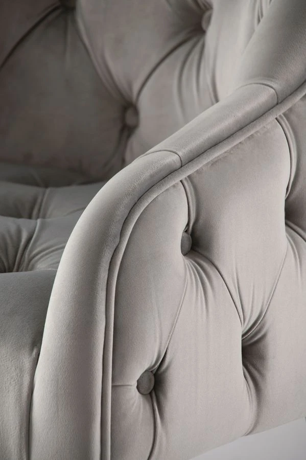 - A skilfully handcrafted deep buttoned chair with an elegant flowing form