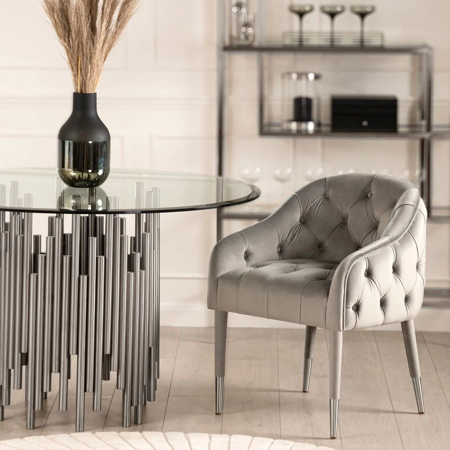 Be the first to review “Sophia Dining Chair – Grey – Silver Caps” Cancel reply