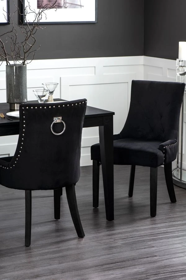 Be the first to review “Torino Dining Chair With Back Ring – Black Velvet – Legs In Black Finish” Cancel reply