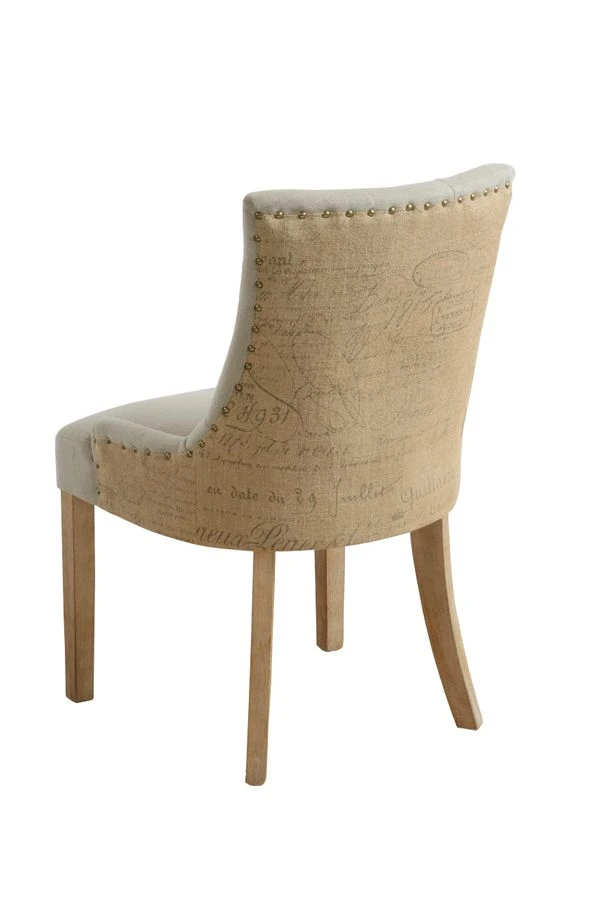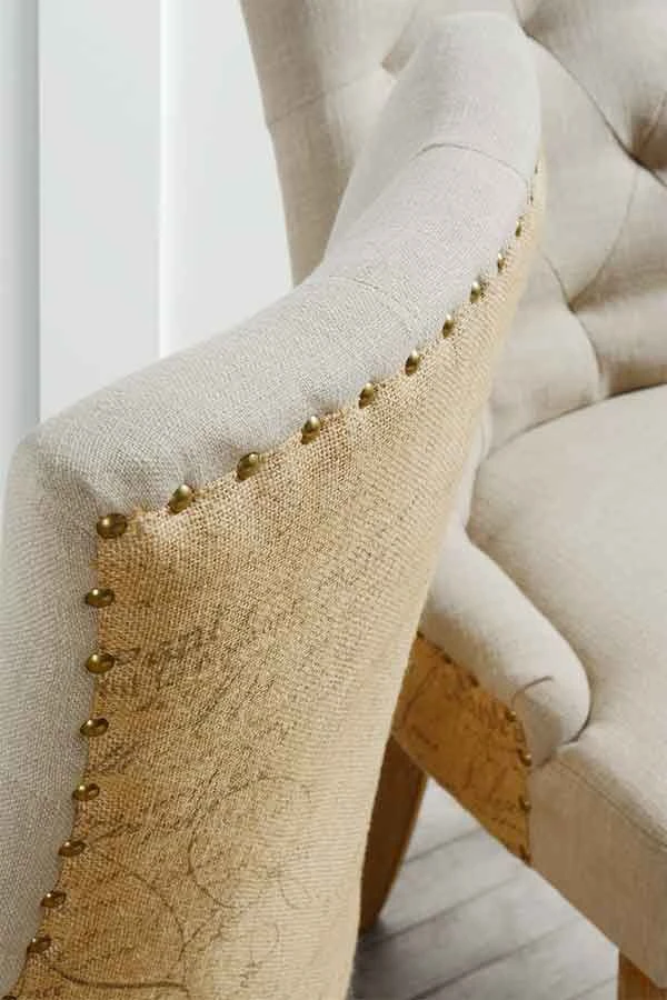- Upholstered in two complementary fabrics – the front is thick, deeply woven natural Linen, the back a tactile hessian finished with subtle calligraphy
