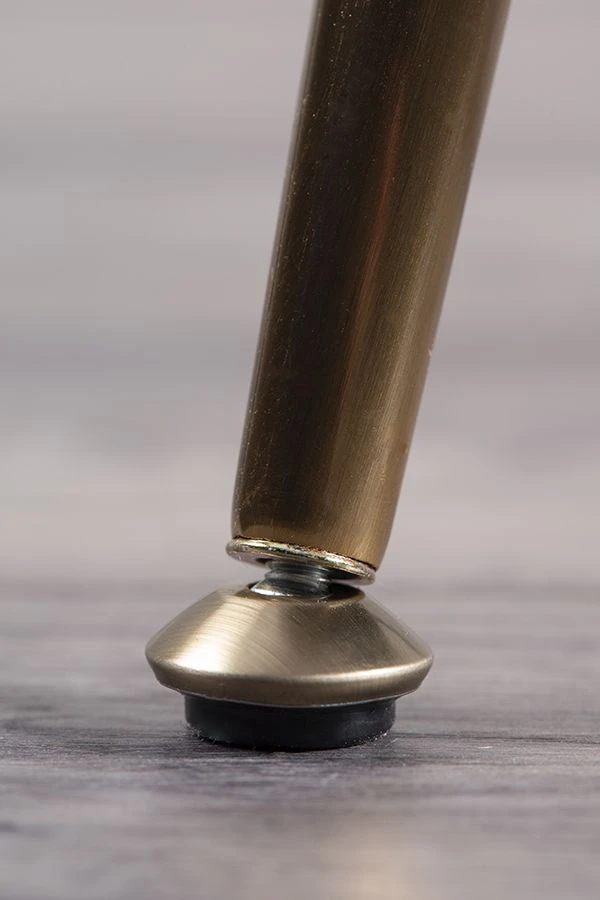 - Steel legs with brushed brass finish and adjustable feet